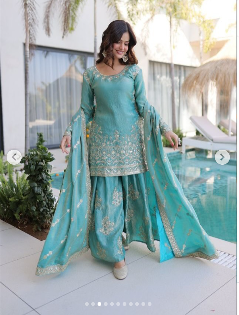 Sharara - Fendi Crush with Zari Sequins Embroidered work